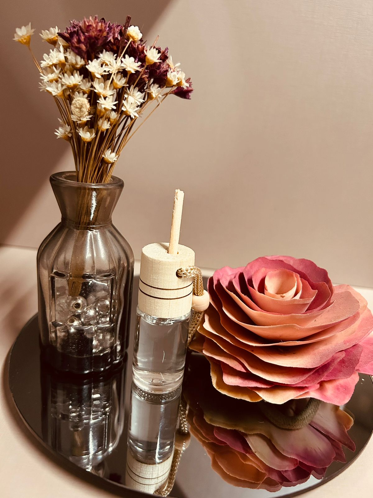 O mini difusor da casa flor, pode ser utilizado como difusor de carro ou cabide, sendo a combinação perfeita entre fragrância e elegância.